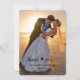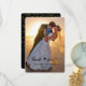 Your photograph takes centre stage on this vertical photo template wedding thank you card. The text "Thank You" is written in black script with a connecting heart on the lower portion. Your custom text is below that. The back of the invitation is a falling gold hearts confetti pattern on black. A touch of old fashioned quality with a modern twist!