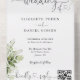 Heart Script Greenery Floral QR Code Wedding All In One Invitation