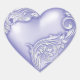 Beautiful heart sticker with silvery white flourish scroll on a lilac / lavendar /light blue violet coloured heart, perfect for adorning scrapbook pages or used as an envelope seal.
