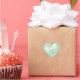 Mint green heart shaped sticker with elegant decorative white scroll work design, perfect for wedding invitation seals, engagements, save the dates, mothers day and more.