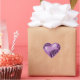 Beautiful heart sticker with silvery white flourish scroll on a violet colour heart, perfect for adorning scrapbook pages or used as an envelope seal.