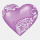 Beautiful heart sticker with silvery white flourish scroll on a violet coloured heart, perfect for adorning scrapbook pages or used as an envelope seal.