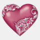 Beautiful heart sticker with silvery white flourish scroll on a cranberry / wine coloured heart, perfect for adorning scrapbook pages or used as an envelope seal.