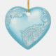 Beautiful heart shaped ornament with silvery white flourish scroll on aqua / sky blue, perfect for hanging anywhere any time of the year. Hang on the wall, from a gift or even around the neck of a bottle of wine. Perfect for Mother's Day, Valentines Day, birthdays, anniversaries and more.