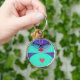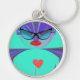 Heart Selfie Whimsical Portrait Teal Background Keychain