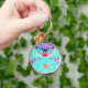 Heart Selfie Whimsical Portrait Teal Background Ke Key Ring