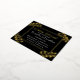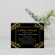 Heart Shaped Flowers on Black Gold Foil rehearsal Invitation Postcard