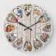 Create your own multi photo clock. The photo template is set up for you to add 12 photos which are displayed in a heart shaped frame. The design uses portrait vertical photos for all numbers except 3 and 9 which are in landscape horizontal format. The clock face has simple numbers with a rustic light brown wood effect background.