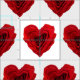 Lovely romantic illustration featuring a heart-shaped red rose blossom with water drops on a clean white background.