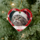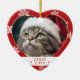 Celebrate the feline in your life with this charming heart-shaped cat lover photo ornament, perfect for honoring your pet during the holiday season. This personalized ornament features a festive red border adorned with white snowflakes, framing your cat’s photo in a heartwarming display of holiday cheer. Below the image, you can customize your cat’s name and the year, creating a keepsake that’s as unique as your furry friend.
