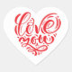 Heart shape stickers are shown in a red love you print.