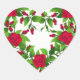 Heart shape sticker shown with a graphic print of pretty red roses.