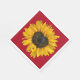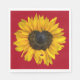 Yellow sunflower with a heart-shaped centre and ladybug on a red background.