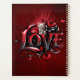 Heart Whispers: The Magic of Love and a Little Kitten.. Stylised word LOVE rises majestically in bold, red font, framed by mysterious black outlines and ornate flourishes that dance around the letters like delicate tendrils. The background is a deep red, reminiscent of the embers of a blazing fire - warm and inviting