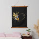 Gold heart shaped frame, decorated with gold, jewellery and white butterflies on black background.