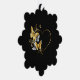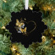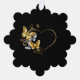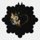 Gold heart shaped frame, decorated with gold, jewellery and white butterflies on black background.