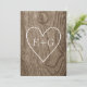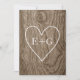 Heart with initials wood grain rustic wedding couples shower invitate displaying your initials in a heart on wood grain and a white frame with vintage elements. Note that there is not real wood but just flat image.