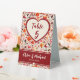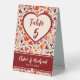Elevate your wedding reception décor with our Heartfelt Blooms Table Tent. Featuring a vibrant floral design in warm red, orange, and blush tones, this table tent combines elegance and functionality. The heart centerpiece frames the table number beautifully, making it easy for guests to find their seats.