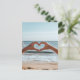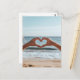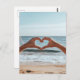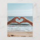Two hands come together to form a heart shape against a serene beach backdrop, symbolising love, connection, and tranquillity by the sea