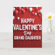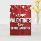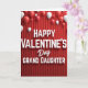 This Valentine's Day card shows a deep red background with rippled folds that look a bit like a curtain. Across the center, large white letters say “HAPPY VALENTINE’S Day GRAND DAUGHTER,” with “Day” in a flowing cursive style and the rest in a simple print style. The words sit right in the middle and have a soft shadow that helps them stand out. Around the message, red and white balloons float in different sizes, and a few are cut off at the edges like the scene continues beyond the card. The mix of balloons and the rich red setting makes it feel festive while still focused on love. It’s a sweet way to remind your granddaughter she’s cherished and thought of on Valentine’s Day 🥰. The design feels warm and close, like a small celebration made just for her ❤️. Hope it helps you share Valentine’s Day sentiments with someone you love.