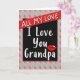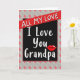 This card shows a black rectangle in the center with the words “I Love You Grandpa” written in white, flowing cursive across it. A thin deep-red glitter border frames the black panel, giving it a warm, special touch without taking over. Near the top left, a red ribbon runs diagonally and reads “ALL MY LOVE” in simple white capital letters. The background is a repeating pattern of soft gray squares mixed with red diamond shapes, so it feels like a cozy geometric setting behind the message. Next to the word “You,” there’s a pair of glossy ruby-red lips, like a sweet kiss added right on the card 🥰. The mix of red, black, and gray keeps the look strong and clear, while still feeling affectionate and close. It’s meaningful because it says exactly what you want your grandpa to know, with a little extra warmth in the details ❤️. Hope it helps you share your Valentine’s Day feelings in a kind, heartfelt way.