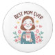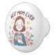 A cute and heartwarming illustration of a smiling mum holding a coffee mug, with "Best Mum Ever" written in playful hand-drawn lettering above her. Surrounded by soft pink hearts, flowers, and sunshine.