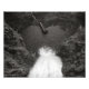A black and white photograph of a heart shaped pool, that is seen overlooking a waterfall.