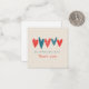 These adorable little 2.5" x 2.5" thank you note cards feature whimsical decorative hearts in red, white and teal on a mocha background. The card front has the EDITABLE heartfelt greeting, "From the bottom of our hearts, thank you." The EDITABLE message inside is, "It's people like you that make this a better world." The is a placeholder for you to add your name(s) or company name.
