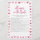 This is a Red Pink Hearts All Eyes The Bride Bridal Shower Game.