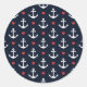 Hearts And Anchors Pattern Classic Round Sticker