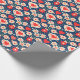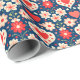 Hearts and flowers in a folk art style makes this Valentine's Day wrapping paper cute, fun, and utterly charming! Red and white hearts, red and shell-pink flowers on a dark blue background could also be used for birthdays or anniversaries.