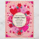 Pink and red hearts and flowers surround a gold circle on a pink background, creating a cute and fun invitation to a Valentine's Day dance.