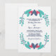 Colourful and whimsical Hearts and Vines Wedding Invitation with a cute stylised vine and sweet heart border in a pretty combination of turquoise, blue, and red. This trendy and modern design is easy to customise with your wedding details.
