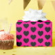 A wrapping paper with black hearts on a hot pink background. Customise the hot pink background among other options.