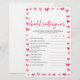 This is a Red Pink Hearts Bridal Scattergories Bridal Shower Game.