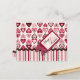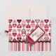 Rows of hearts with stripe border and ric-rac trim and finished off with a polka-dot bow and "with love" hang tag.