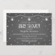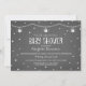 Cute and rustic baby shower invitation in charcoal grey and white with fun handwritten style text, hearts, lanterns and chalkboard pattern.