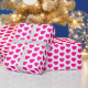 A wrapping paper with hot pink hearts on a white background. You can choose the background colour of your preference.