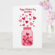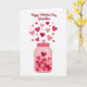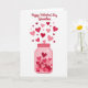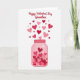 This greeting card shows a translucent pink mason jar centered on a white background, drawn with soft contours that keep the look gentle and cozy. Inside the jar, many hearts in reds and light pinks pack in tightly, hinting at a full-to-the-top kind of affection ❤️. The hearts vary in size and shade, and they lift upward from the jar’s opening in a loose stream, like a sweet little burst floating into the air 🥰. That rising trail creates a sense of giving and receiving, as if a warm message is being sent out and carried along. Near the top of the card, the phrase “Happy Valentine’s Day Grandma” sits above the hearts in a flowing, handwritten-style line, standing out clearly against the white space. The text is rendered in a dark tone for easy reading, while the hearts keep the focus with their reds and pinks. The jar remains anchored at the center as the heart shapes scatter upward, with the smallest ones reaching closest to the top edge.