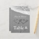 Hearts in sand table number cards for reception dinner | Beach theme. Black and white photo image with romantic hearts on the coast. Entwined hearts drawn in the sand. Great for reminding your maritime or beach wedding. Personalizable bride and groom name with elegant script text.