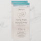 Features two hearts in the sand and the bride's and groom's initials with turquoise water and white sand beach background, great wedding program for summer beach wedding, or tropical destination wedding.