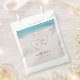 Features two hearts in the sand and the bride's and groom's initials with turquoise water and white sand beach background, great favour bags for summer beach wedding, or tropical destination wedding.