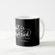 Celebrate love in style with our HEARTS Just Married Script Names Wedding Date Coffee Mug – enjoy drinking your favourite beverage from your custom cups in your honeymoon suite! Crafted with unique charm, this adorable mug adds a touch of whimsy to your newlywed journey. Featuring trendy white script font typography. Personalised with your names + wedding date. Bold black background and pink accents.