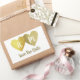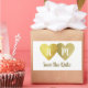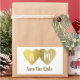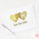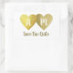 Two faux gold hearts together (bride and groom) with monogram... a simple and elegant 'Save the Date' wedding-sticker for a memorable event, to personalise with your own initials