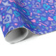 Wrapping paper featuring romantic girly pattern, pink, copper and violet hearts, birds and circles scattered on ultramarine blue background. Handmade texture - tissue paper collage. This colourful design will be great gift for your beloved in Valentine’s Day, birthday or just as a sign of love.