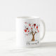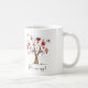 Rev up your mornings with this cool mug featuring an illustration of a tree with hearts of various shades of red with the word 'Morning!' written in modern typography .