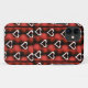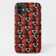 This graphic design, has been Digitalised, into an Abstract, chequerboard pattern, with small, black hearts, on white hearts-displayed upon, red, and black squares.