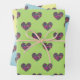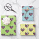 Pretty, colourful hearts on pastel backgrounds adorn our 3 sheet set of wrapping paper. By Monkey Business Graphic Design. 2021