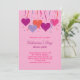 Eye-catching Valentine's Day invitation. Features hearts hanging from wavy strings. The hearts and strings have a dashed outline that adds a crafty look. Confetti floating around add a festive look. Ideal to host a lunch, brunch, dinner or party. Add your own wording. Sweet and colourful design, great for a fun yet stylish couple.