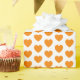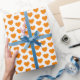 A wrapping paper with orange hearts on a white background. Customise the background colour among other options.
